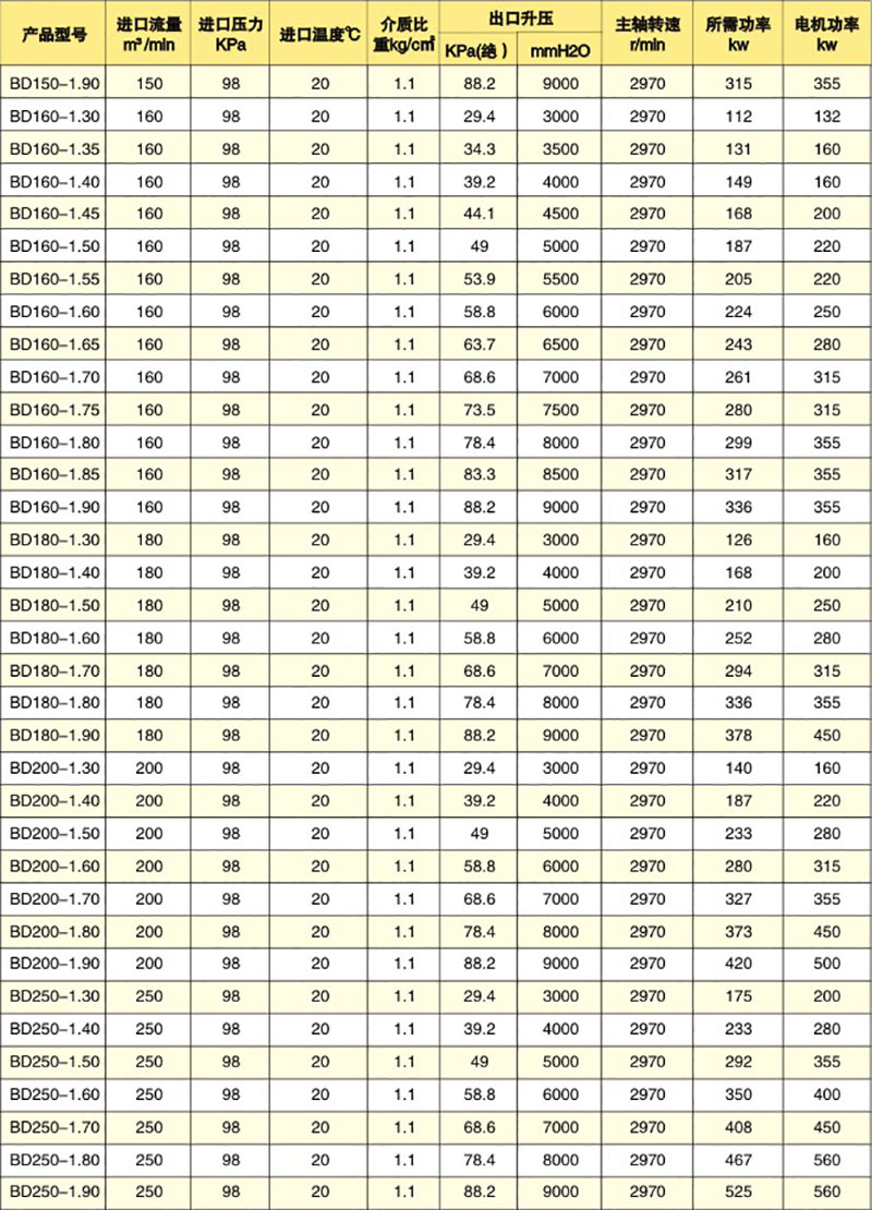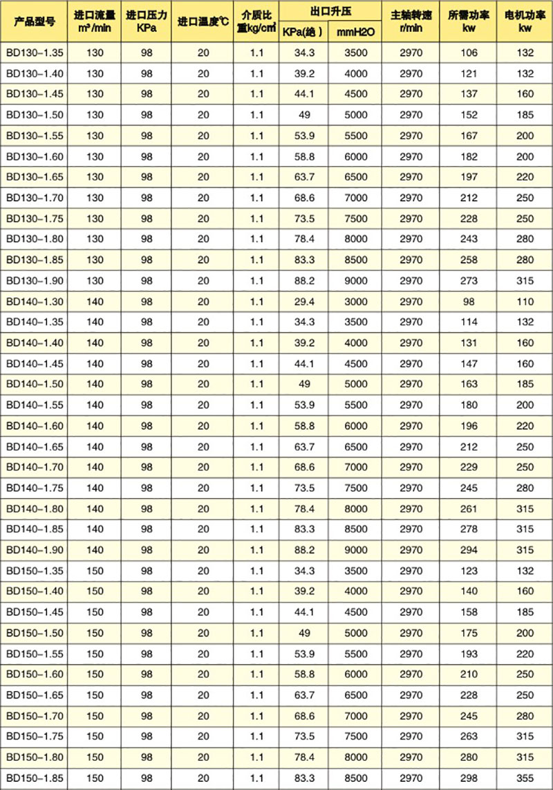 多級(jí)離心風(fēng)機(jī)參數(shù)表