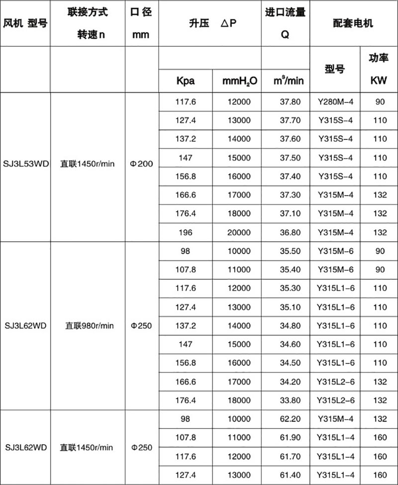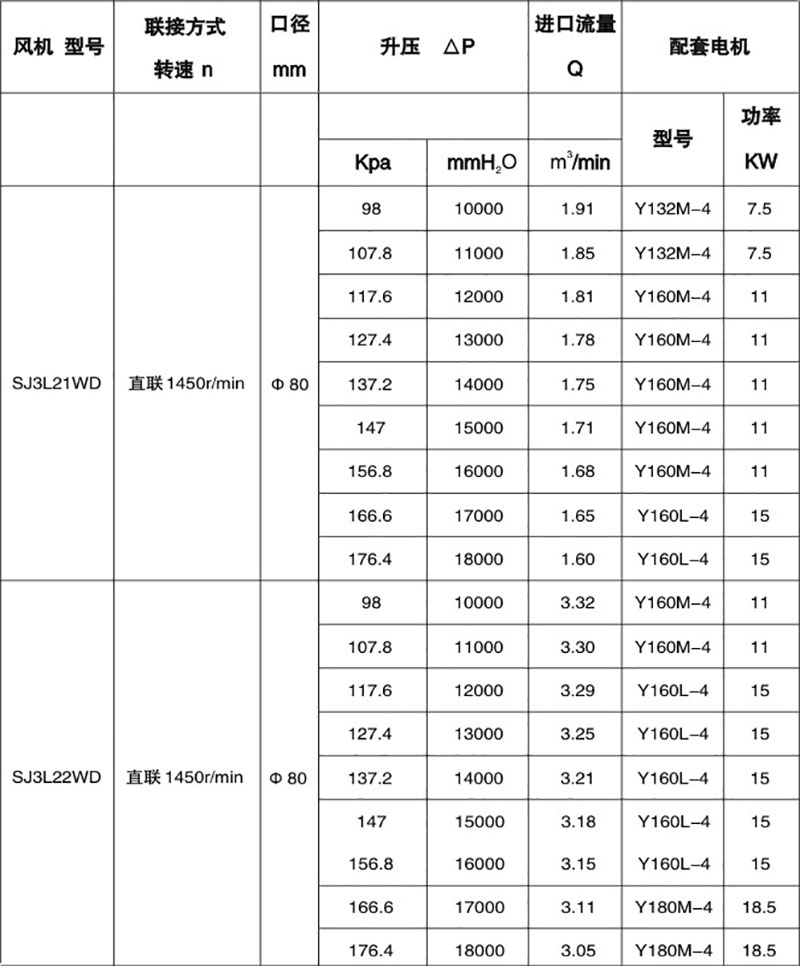 雙級高壓羅茨風(fēng)機(jī)性能表