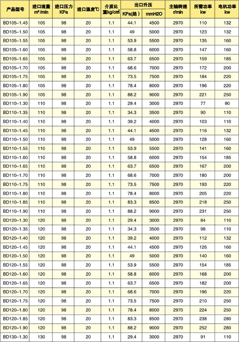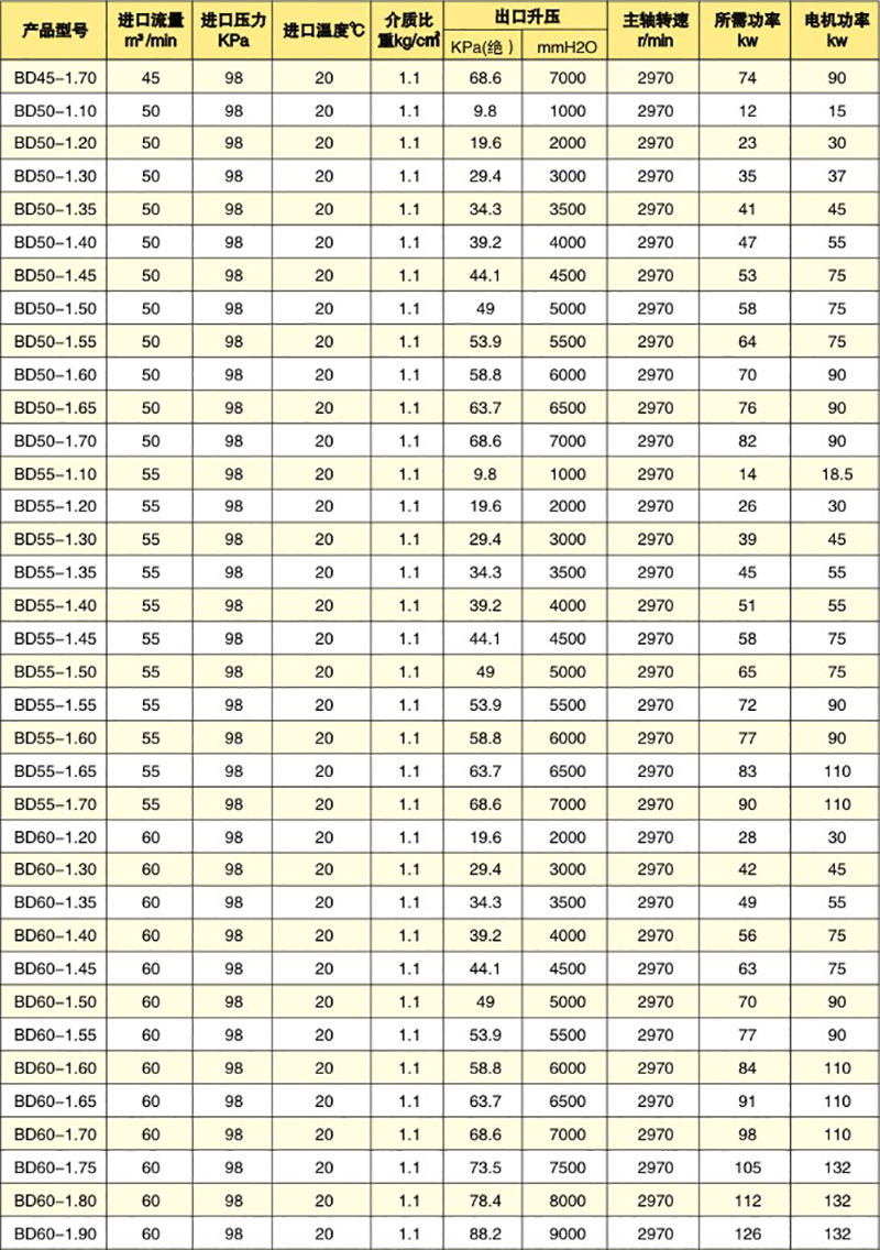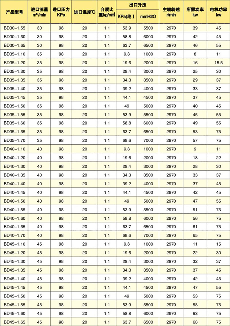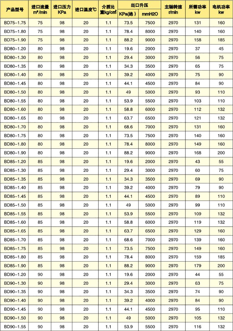 多級(jí)離心風(fēng)機(jī)參數(shù)表