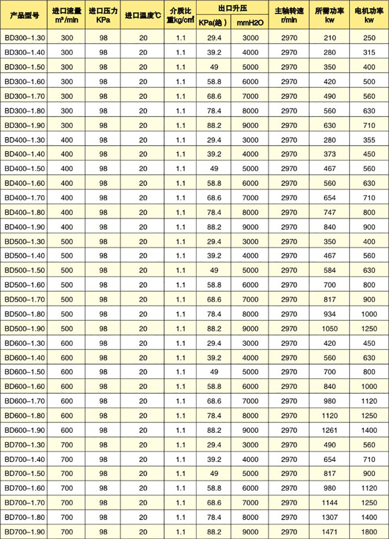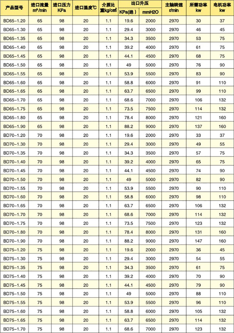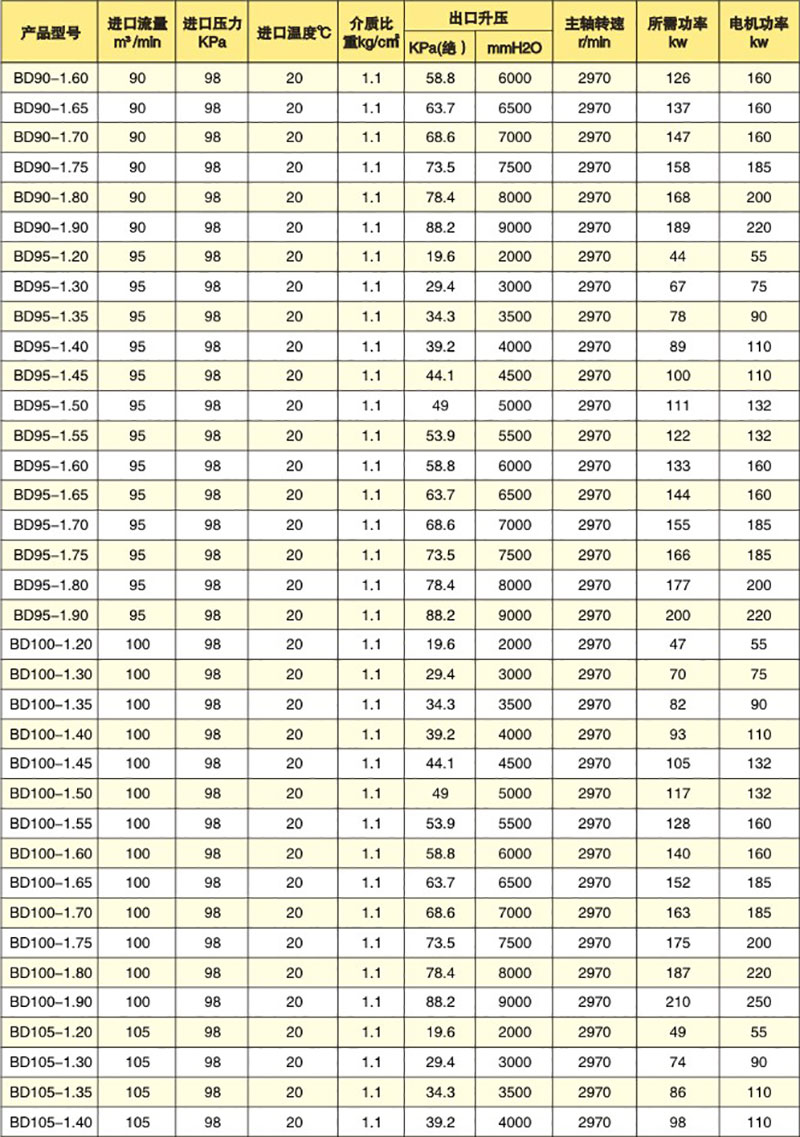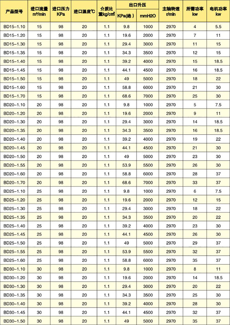 多級(jí)離心風(fēng)機(jī)參數(shù)表