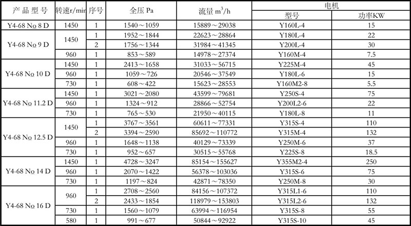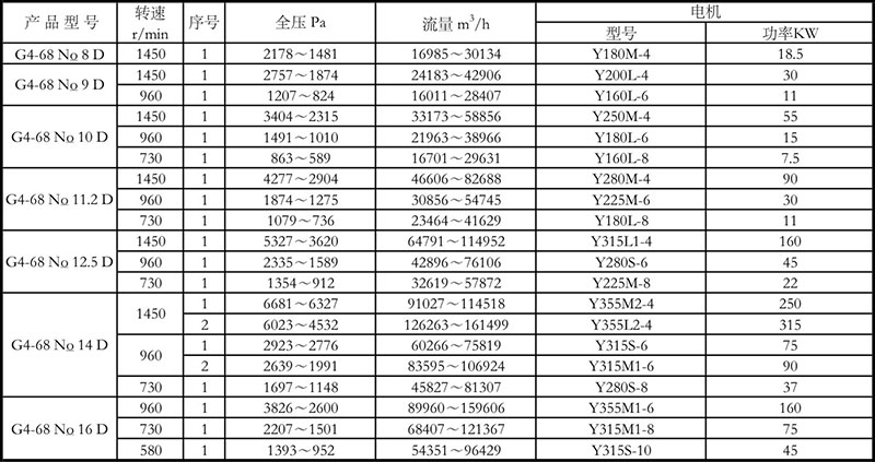 (5)產(chǎn)品全稱舉例如下:GY4-68No.8D右90,其中G、Y分別表示鍋爐通風機與鍋爐引風機。