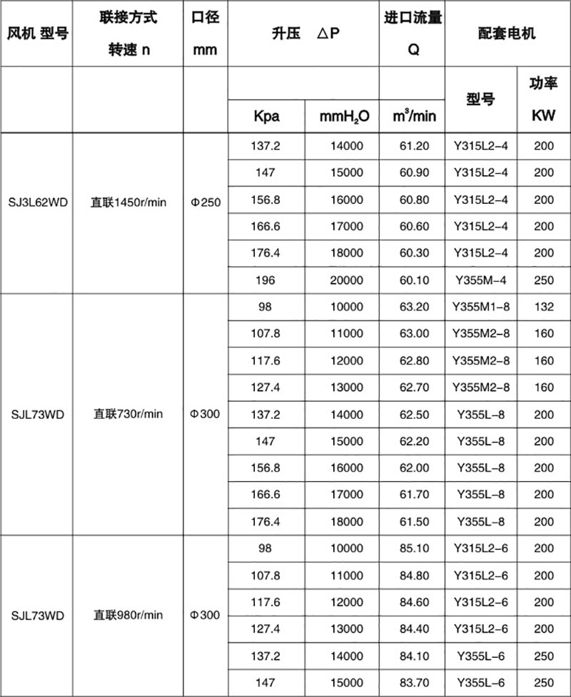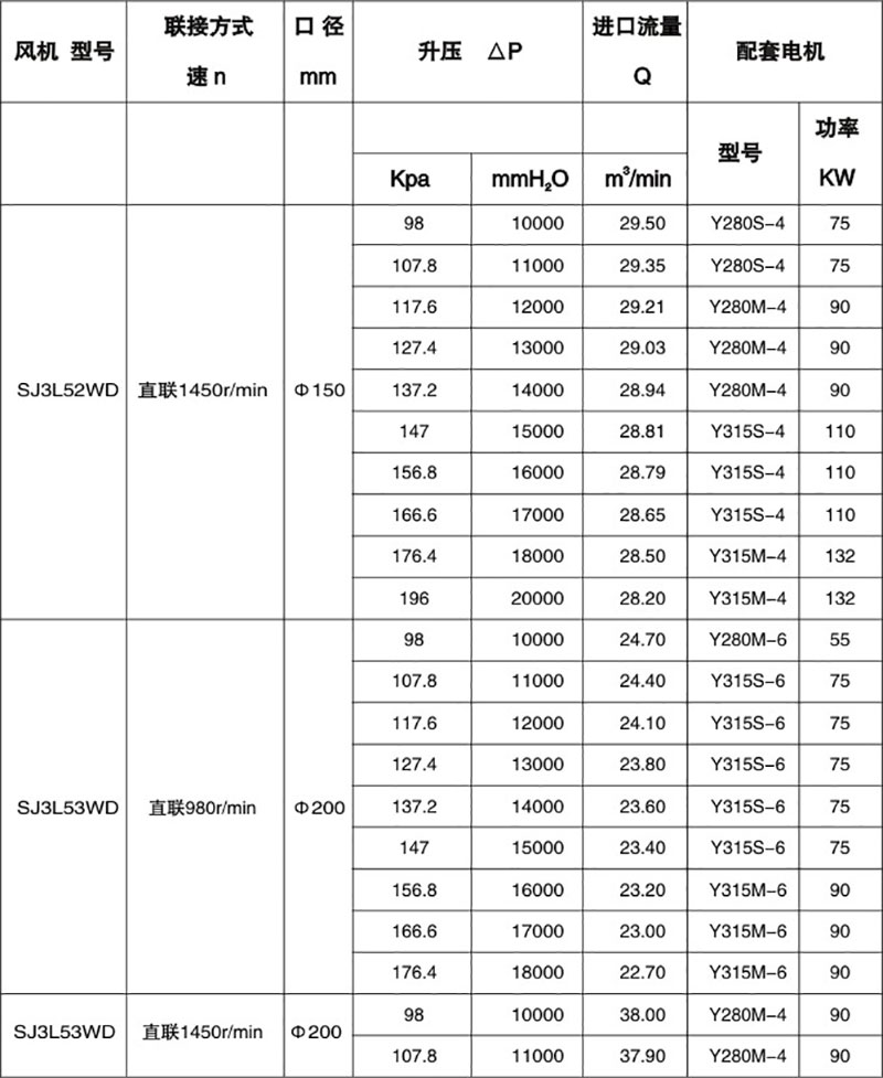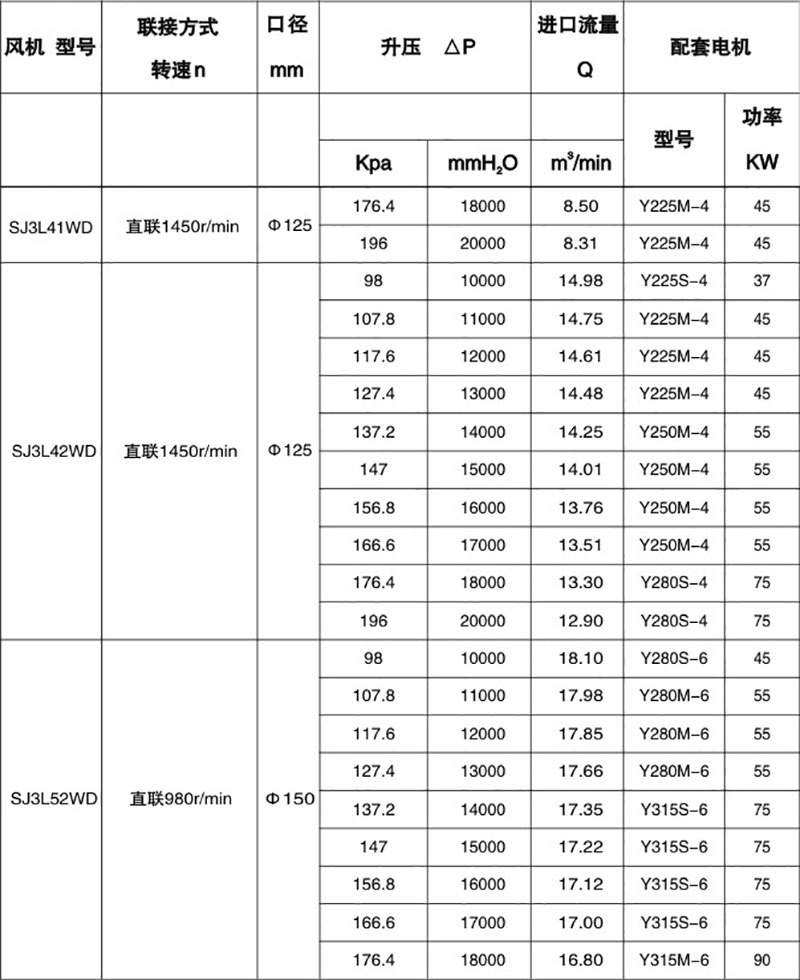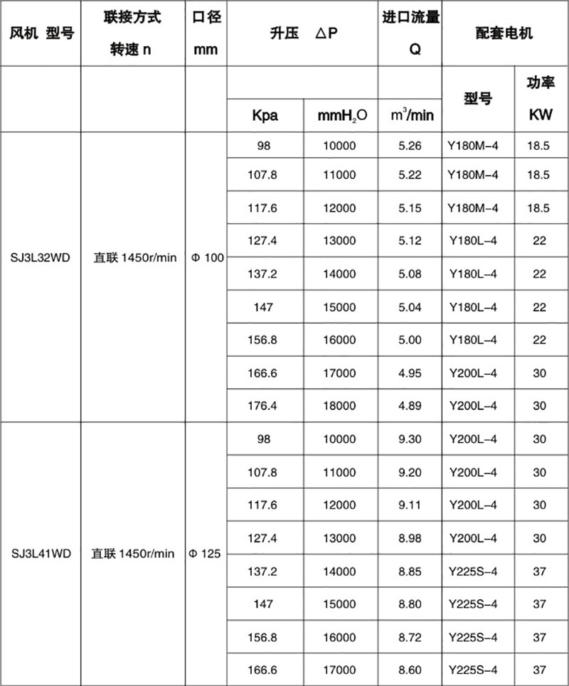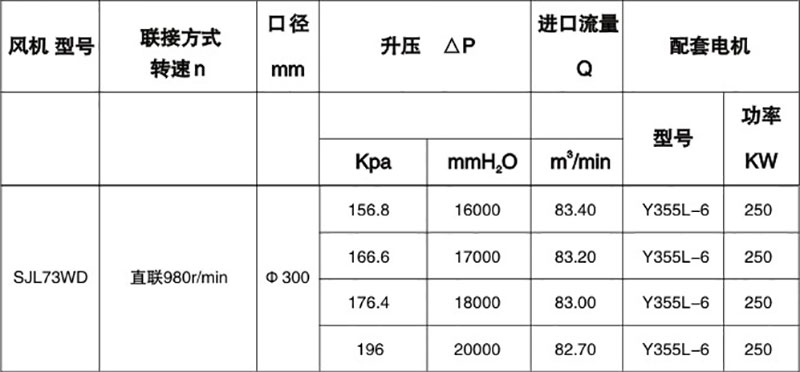 雙級高壓羅茨風(fēng)機(jī)性能表